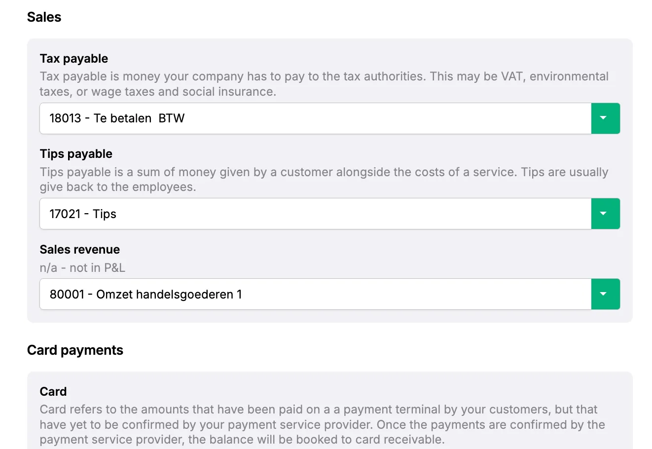 Note: if you are unsure what an “account” is, scroll in the backoffice to Accounting > Chart of Accounts page.