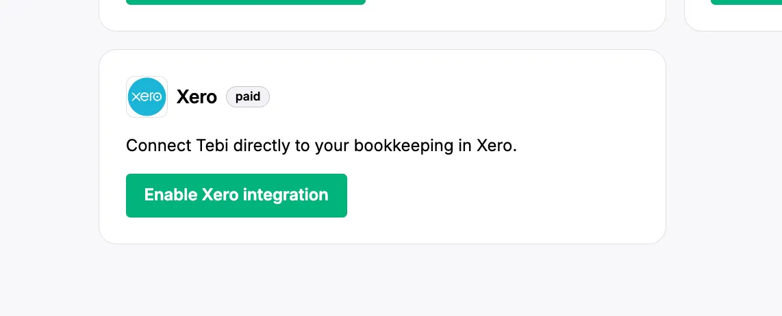 Navigate to the ‘Xero’ box and click on ‘Enable Xero integration’
