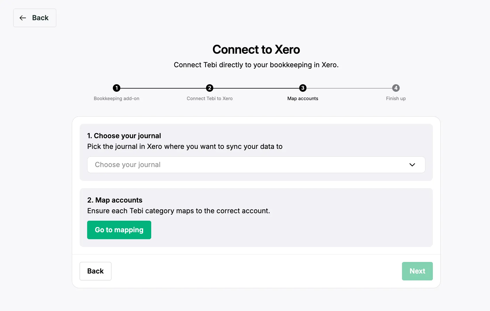 The first step to complete here is picking the journal in Xero where you want to sync your data to.