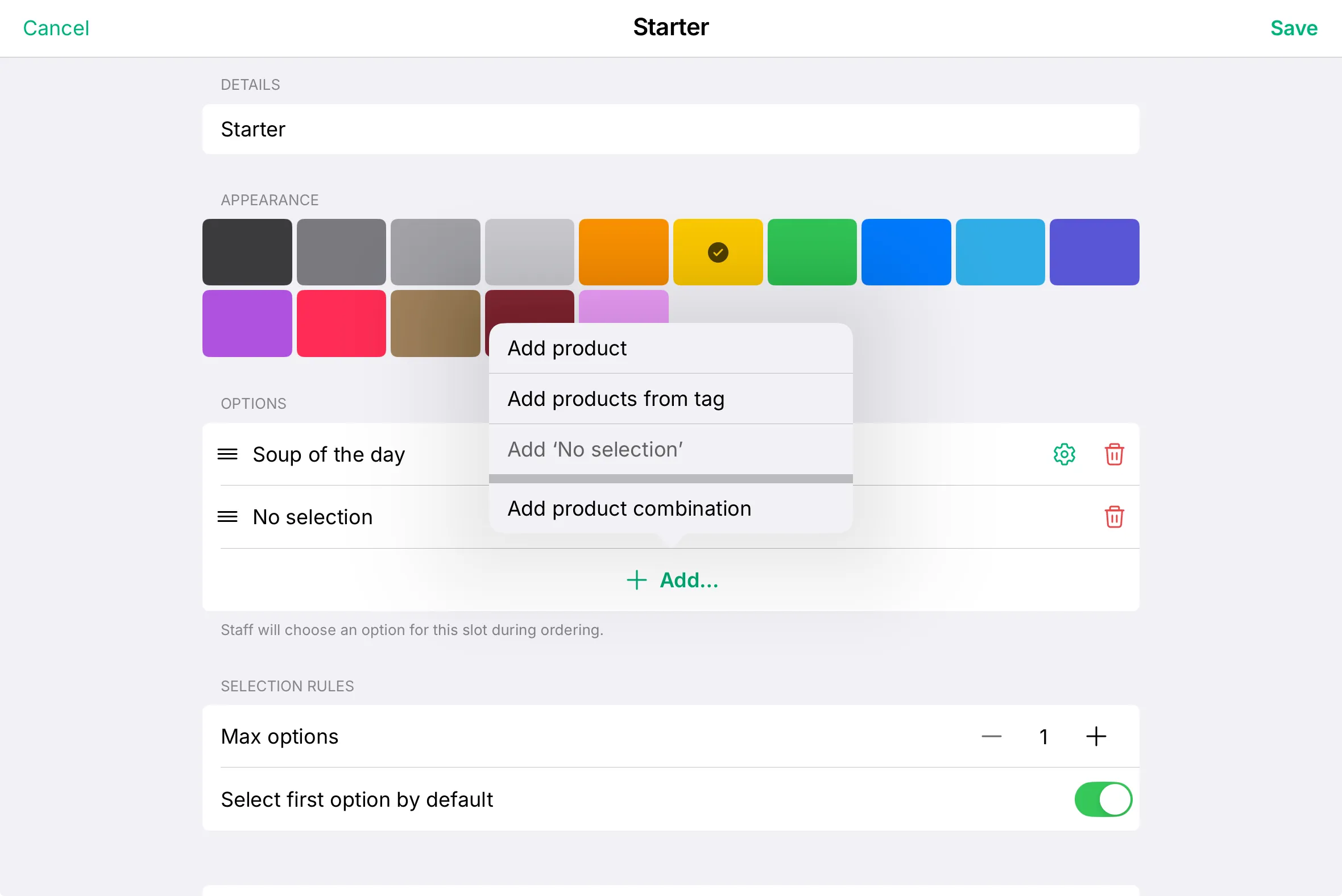 Add ‘No Selection’: use this for add-ons or items guests can skip, such as Extra cheese or Dessert. To make a slot optional, enable No selection.