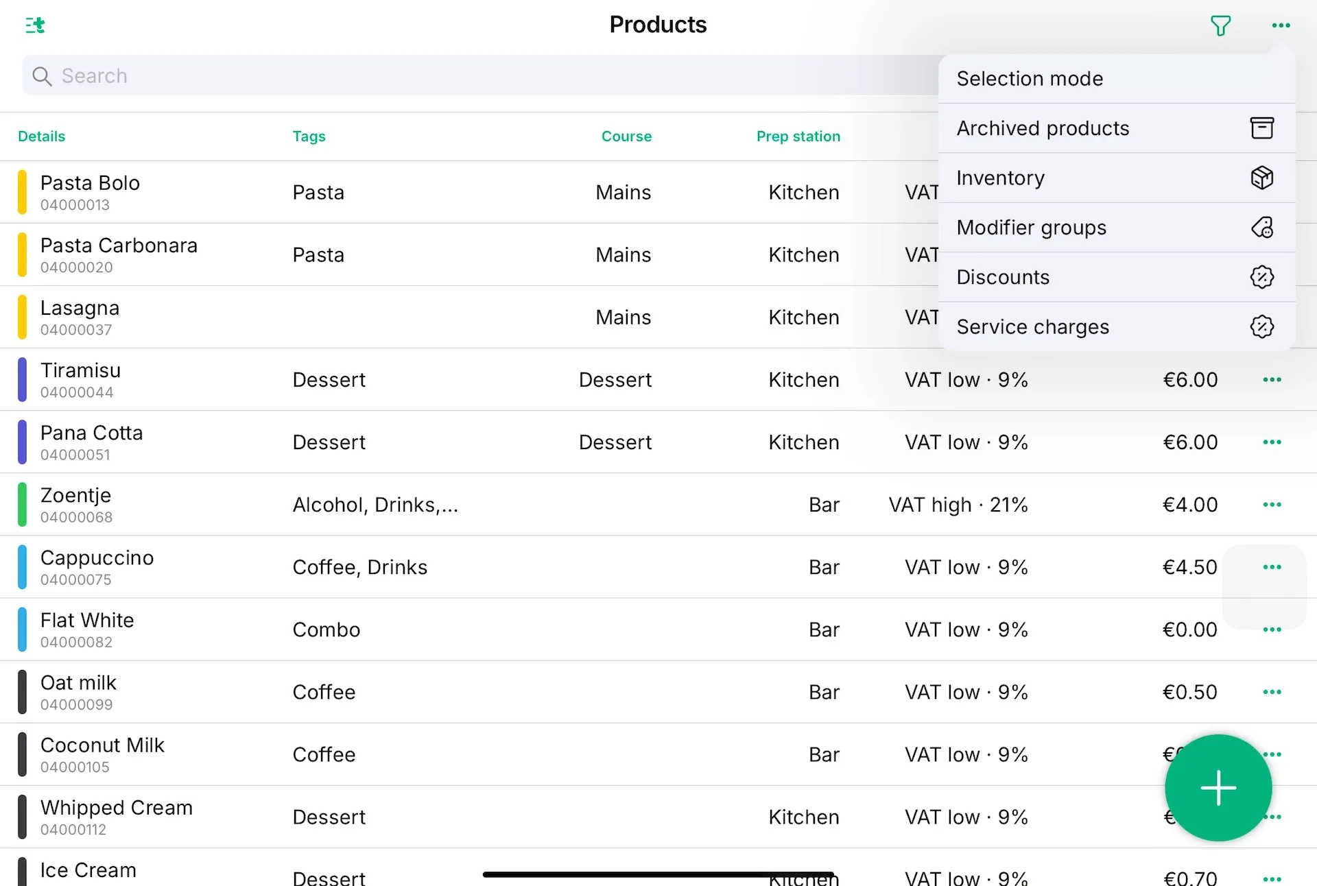 In the app, go to Menu, tap Products, tap the three dots, and select Discounts.
